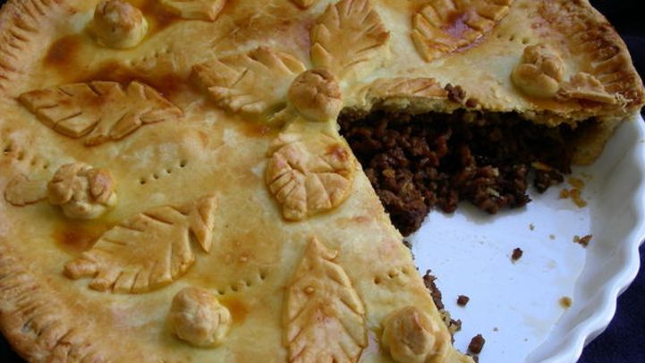 - Add the cooled filling mixture; brush edges of pastry with milk or beaten egg; put the pastry top on; press edges down with a fork.